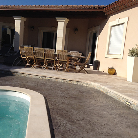 Ce site est dédié à la présentation du béton imprimé décoratif, béton marqué, béton empreinte, béton désactivé, béton coloré, béton balayée, béton industriel, béton lise et dalles de béton brut. Nous pouvons réaliser aussi des imprimés décoratifs en surfaces verticales, sur façades ou murs.